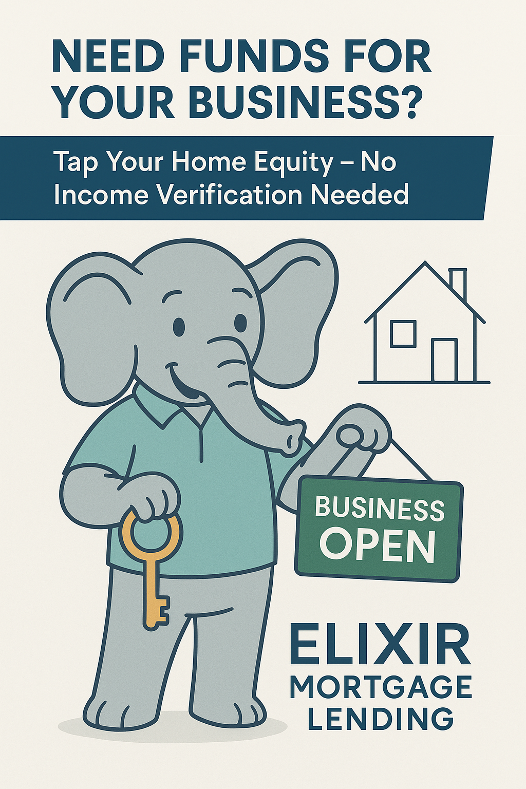 Stated Income Loan California, Stated Income Loan Florida, Cash Out Refinance, No Income Verification Loan, High FICO Borrowers, 60% LTV Loan, Business Purpose Refinance, Self-Employed Mortgage, Elixir Mortgage Lending, Alternative Home Loans